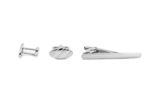 Elevate your everyday style with the Oscar Chrome Cuff-links & Tie Clip Set.