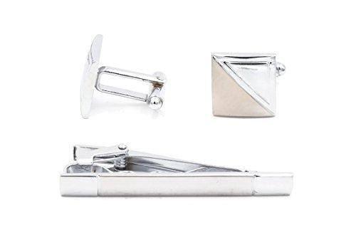 Make a statement of refined style with the Mandujour Pierre Chrome & Silver Square Cuff-links and Tie Clip Set.