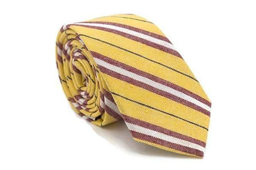 Make a bold statement with the Yellow & Burgundy Striped Cotton Necktie.