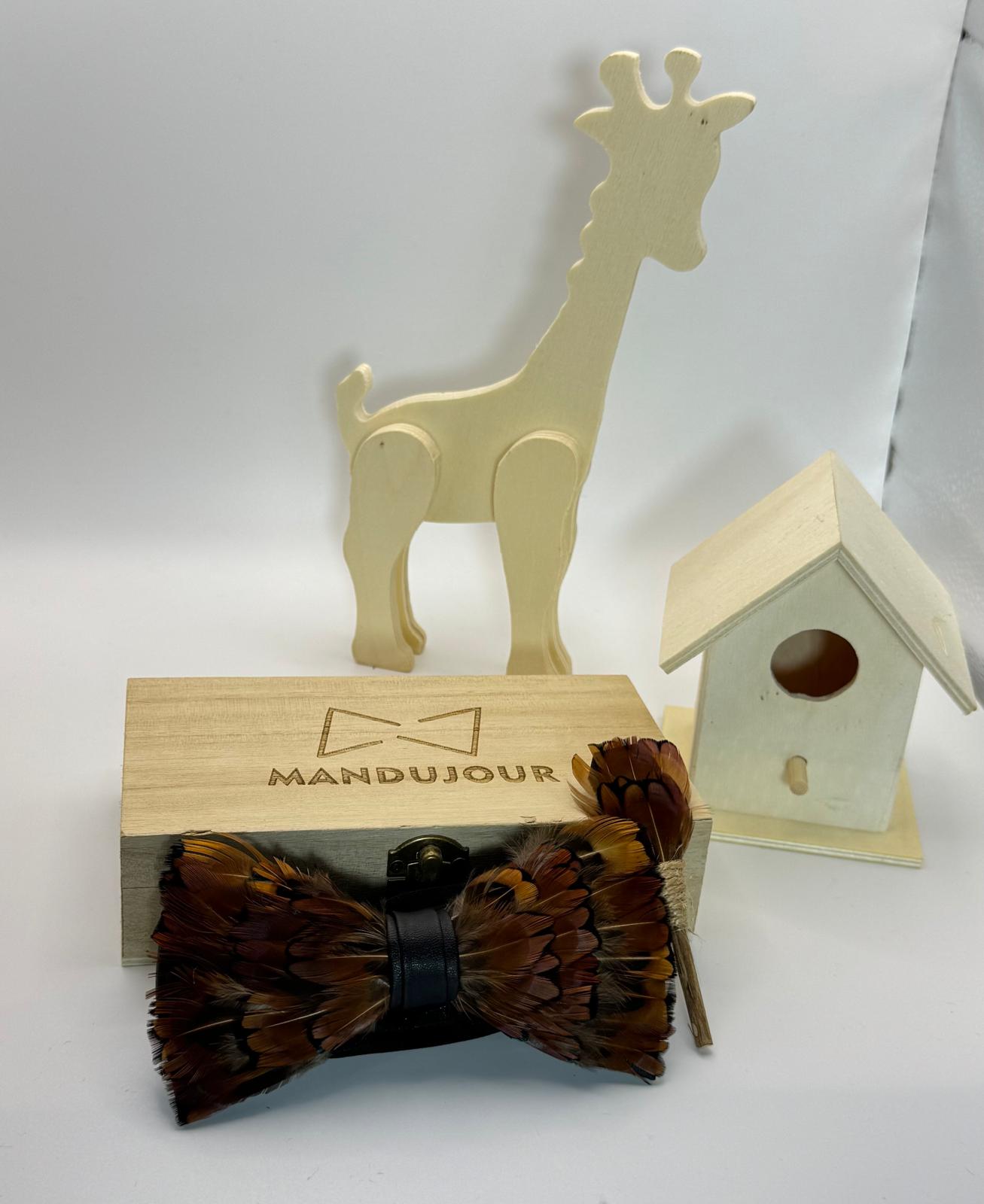 - Handcrafted with ethically sourced orange Golden Pheasant feathers.