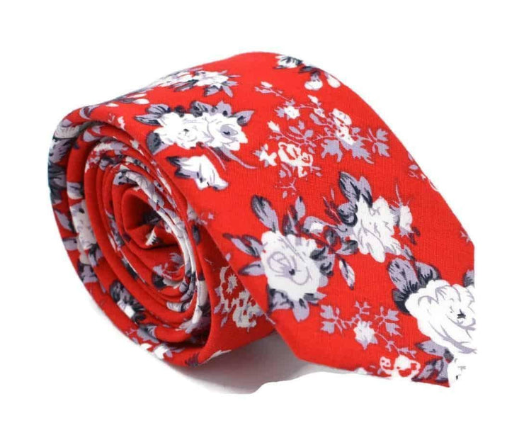 The intricate wildflower pattern, rendered in vibrant shades of red, adds a touch of sophisticated charm to any ensemble. Whether you're dressing for a wedding, a summer soirée, or a casual gathering, this necktie is the perfect way to express your individuality.